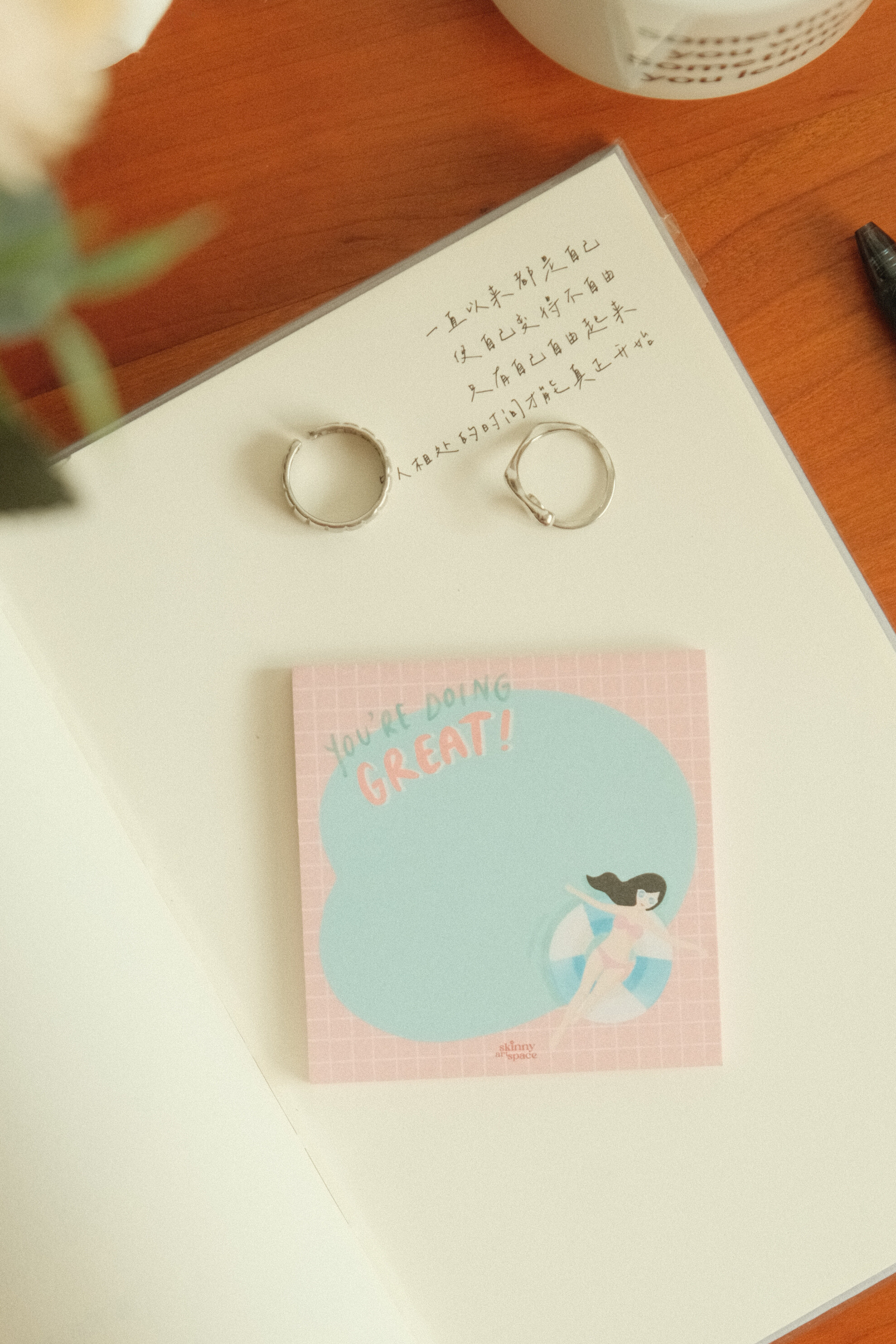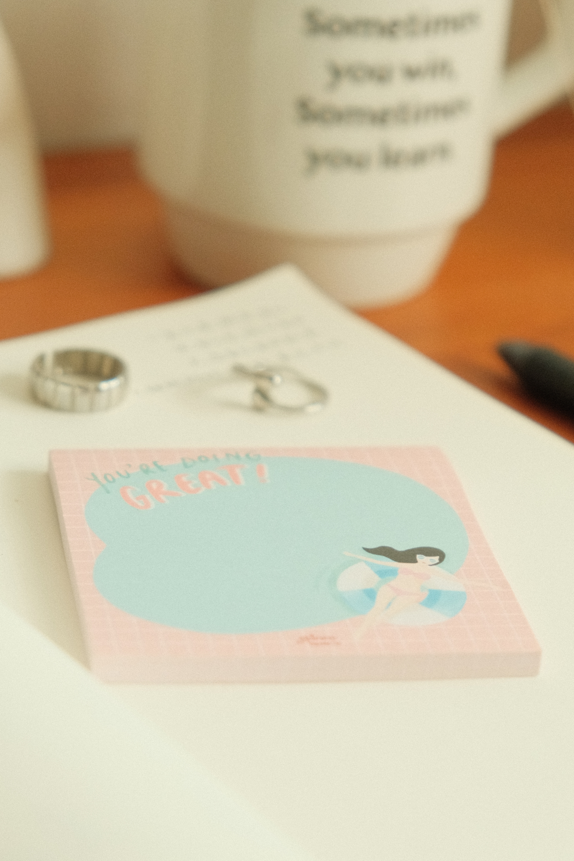 Don't underestimate the power of positive reinforcement in your daily routine. Stick them anywhere - your desk, your journal, or even on the mirror to remind yourself that you are doing great! Don't forget to share them with your loved ones to remind them that they too, are doing great.